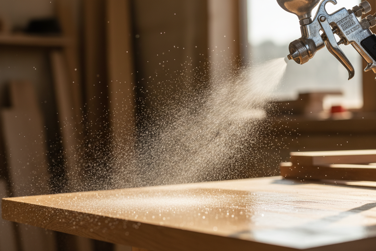 Prevention: Spray above 18°C. Thin the lacquer slightly if viscous. Hold the gun 15-20cm from the surface. Spray light, overlapping passes.