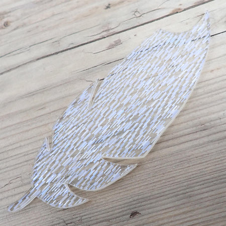Acrylic decorations in a feather design. Designed and made in the UK. Brilliant for displays, table decorations or customisable wedding favours. Acrylic is durable, can be drawn on with acrylic paint markers and is fully recyclable. Approximately 100mm in length, which is around 4 inches.