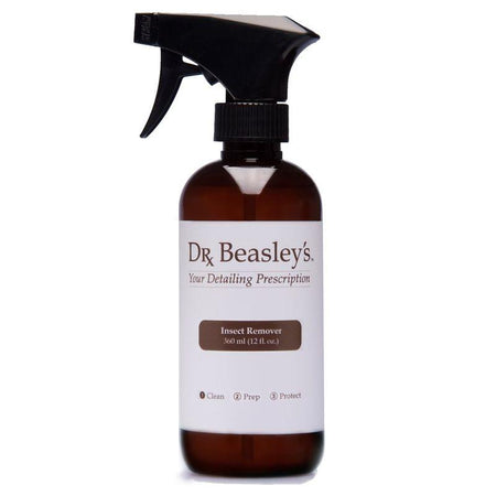 Dr Beasley’s Insect Remover is a safe, easy-to-use solution for removing bug splatter from your vehicle. Sometimes normal car shampoos might not completely remove bug residue from your car’s paint and this can lead to etching and scratches. Insect Remover safely and effectively removes built up bug splatter with ease. Insect Remover contains a special solvent that works to soften caked on bugs and enables you to rinse them away easily. The formula is safe to use on all painted surfaces and will not damage the finish of your car. Before you use Insect Remover thoroughly rinse the surface. Shake the bottle well and spray directly onto the area and then rinse off. Use a Bug Sponge or towel to remove any stubborn residue. Do not let the product dry on the surface and do not apply to hot or newly painted surfaces.