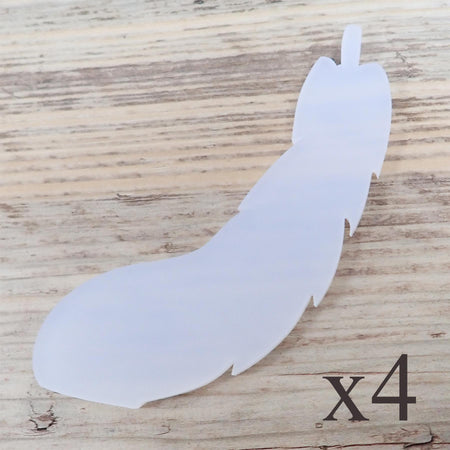 Acrylic decorations in a feather design. Designed and made in the UK. Brilliant for displays, table decorations or customisable wedding favours. Acrylic is durable, can be drawn on with acrylic paint markers and is fully recyclable. Approximately 100mm in length, which is around 4 inches.