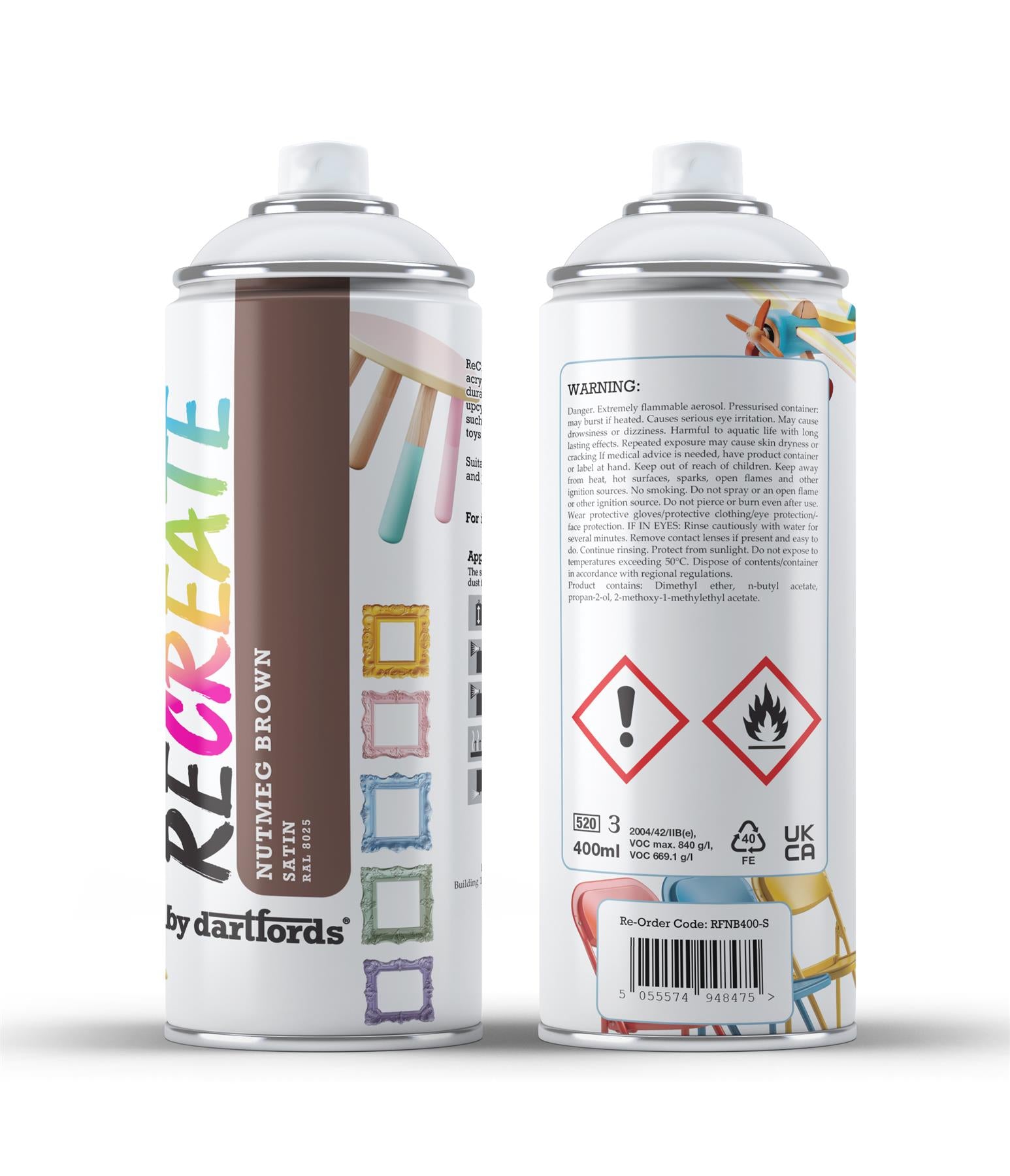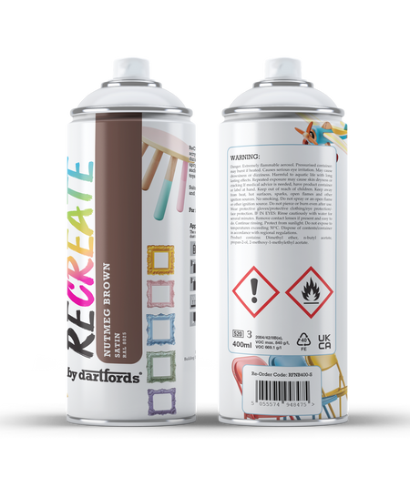 RECREATE Nutmeg Brown Satin Spray Paint for Wood, Metal, Plastic | Quick Drying, Smooth, Durable, Easy-to-Apply | Suitable for Indoor / Outdoor | For Furniture, Craft, Doors, Ornaments, Pots, Frames
