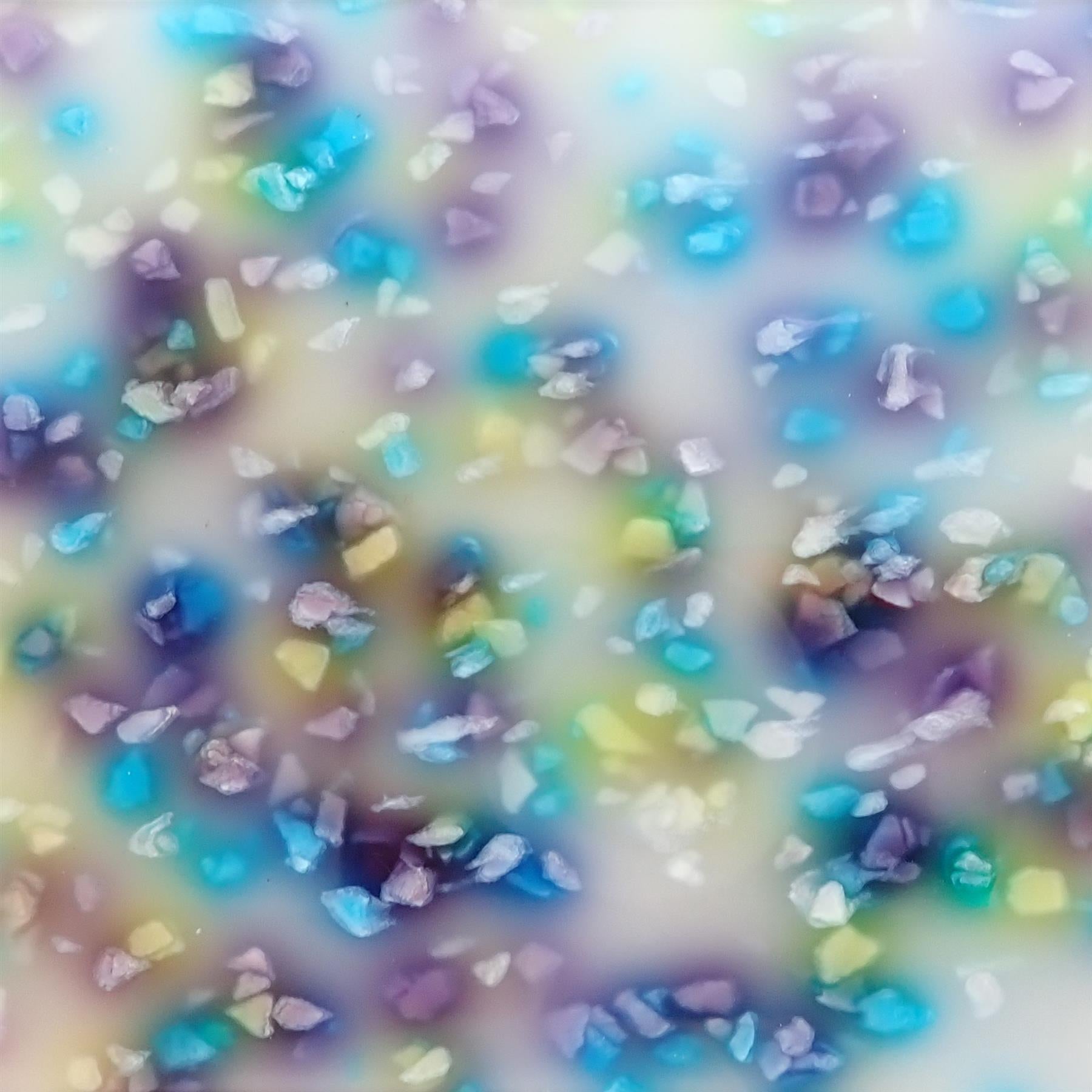Cast acrylic sheet with holographic glitter flakes throughout; this is a premium glitter sheet with the flakes embedded in the sheet so the appearance remains however the sheet is machined. Sheet can be bent, polished, illuminated and laser cut. Available in sizes from 150x125mm up to full sheets of 1000x600mm. 3mm thickness makes it suitable for all manner of jewellery, craft and display projects. Glitter sheets can be laser cut but extra care should be taken as the flake can get very hot, and it produces a rougher finish which may need sanding or polishing afterwards.