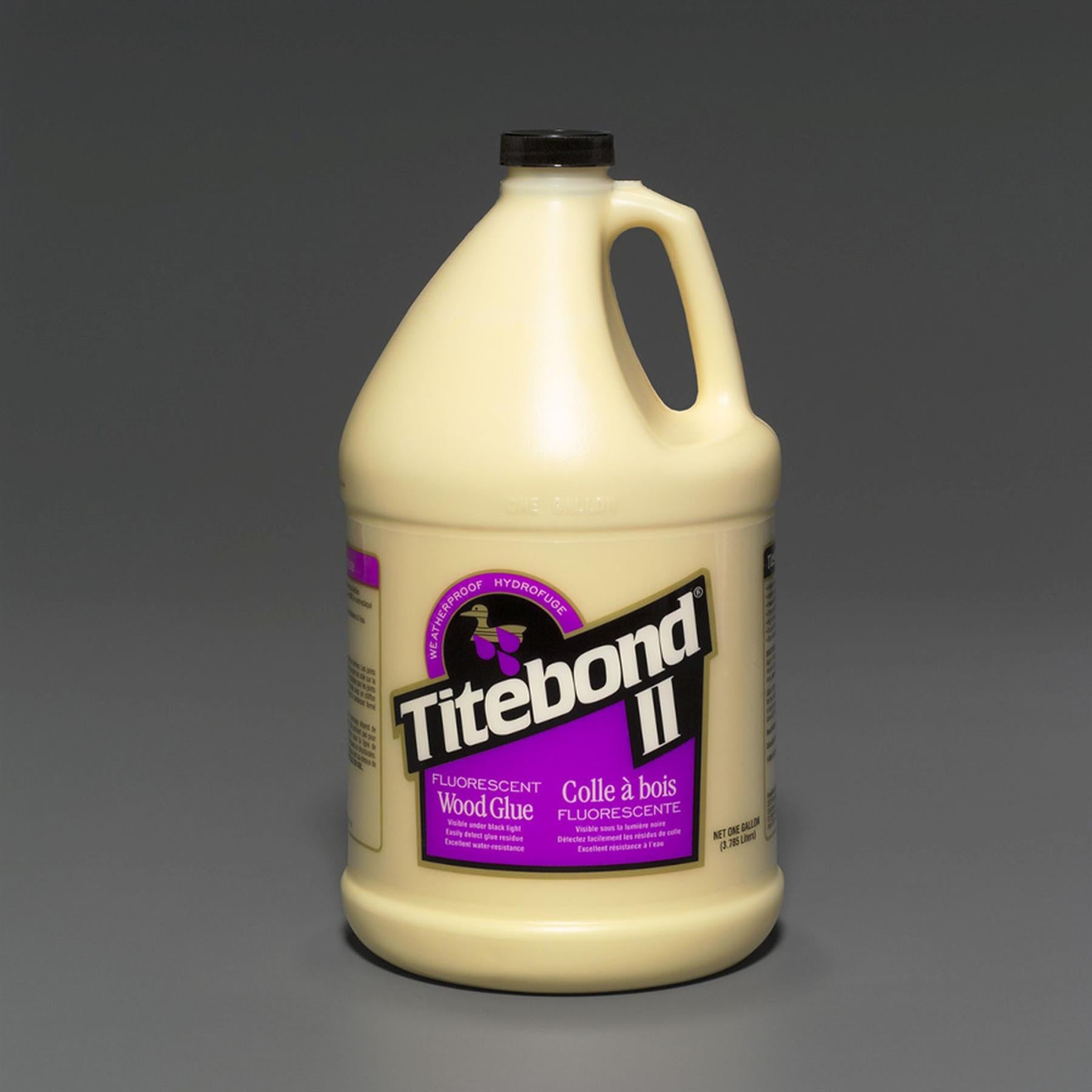 Titebond II Fluorescent contains a dye that, when viewed under a black light, enables woodworkers to inspect the glue line and assist in the cleanup process.