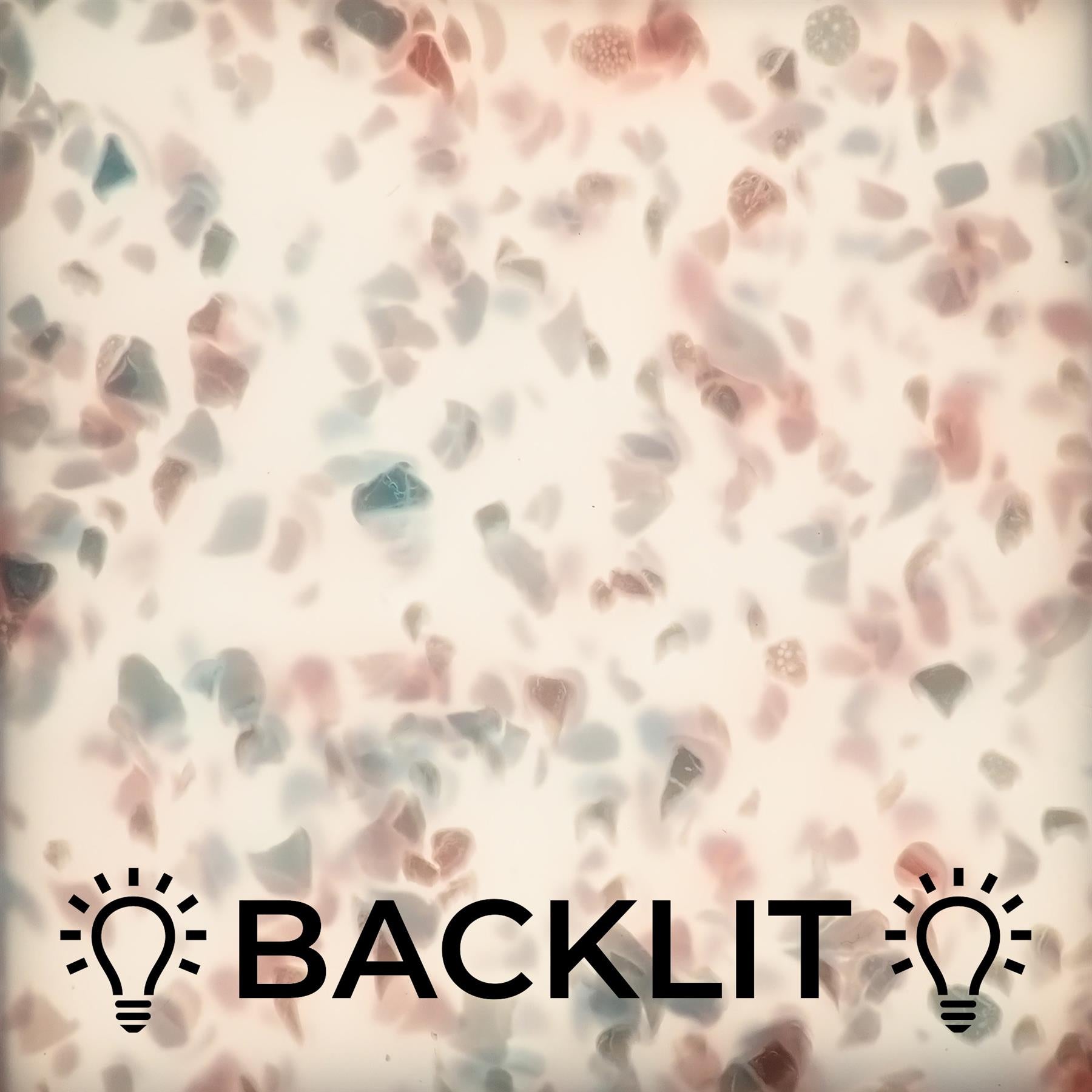 Cast acrylic sheet with holographic glitter flakes throughout; this is a premium glitter sheet with the flakes embedded in the sheet so the appearance remains however the sheet is machined. Sheet can be bent, polished, illuminated and laser cut. Available in sizes from 150x125mm up to full sheets of 1000x600mm. 3mm thickness makes it suitable for all manner of jewellery, craft and display projects. Glitter sheets can be laser cut but extra care should be taken as the flake can get very hot, and it produces a rougher finish which may need sanding or polishing afterwards.
