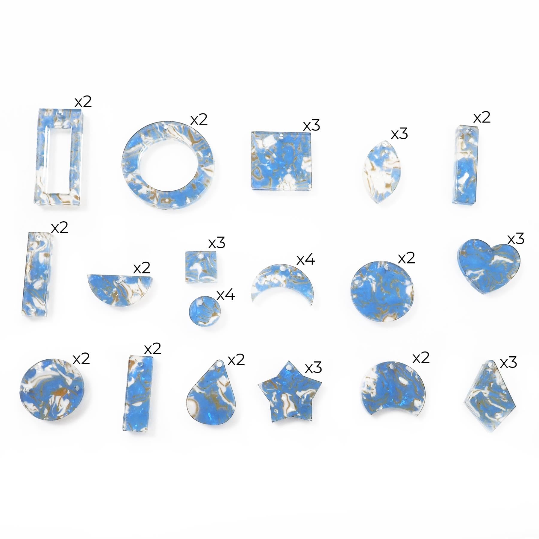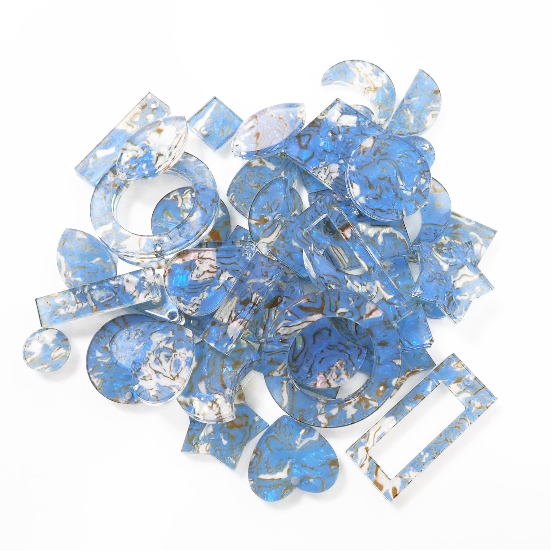 Pack of mixed shapes for creating your own stunning acrylic jewellery. Shapes range in size from 10mm to 33mm. Pack contains over 40 pieces, plenty for creating multiple matching pieces. Each piece comes pre-drilled with 1 or 2 holes for attaching your chosen chain or findings. Our acrylic jewellery components are all designed and made in our studio in the UK, and available in a stunning array of patterns and colours.
