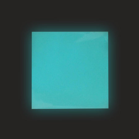 Luminescent 'glow in the dark' inlay blank. Blue/green appearance in daylight. Gives off a light blue glow in the dark. No batteries required - the material soaks up daylight (or UV from a torch) and re-emits this to glow in dark conditions. Use for creating striking inlays which stand out even more when the lights go down, or for making useful markers.