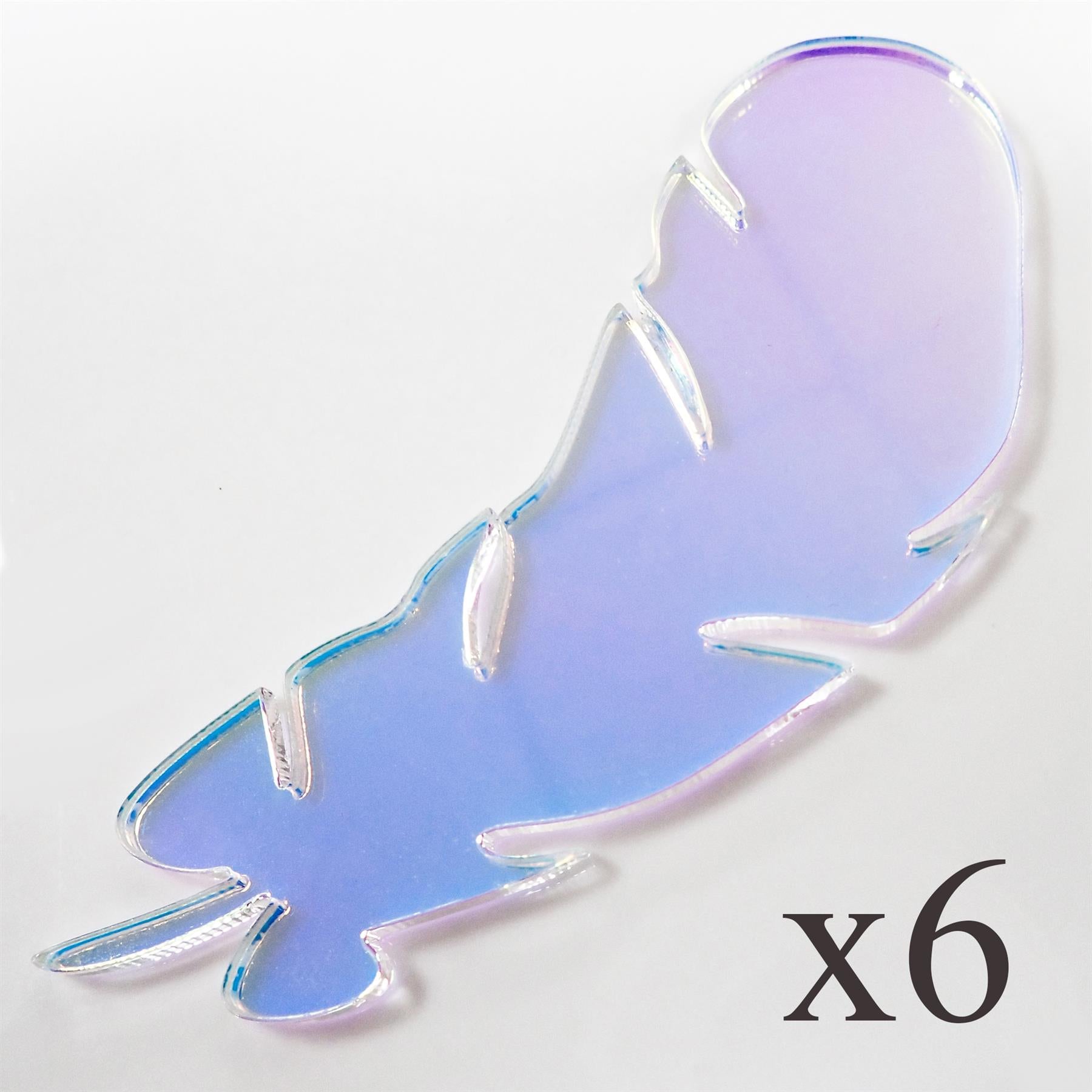 Clear Rainbow Celluloid Laminate Acrylic Feather Decorations, 100mm (Style 2) (Pack of 4)