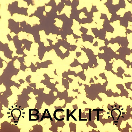 Composite sheet made of a thin film of celluloid laminate sandwiched between two layers of clear cast acrylic, giving the benefits of both materials - the gorgeous and varied patterns possible in celluloid, with the stability and ease of machining of acrylic