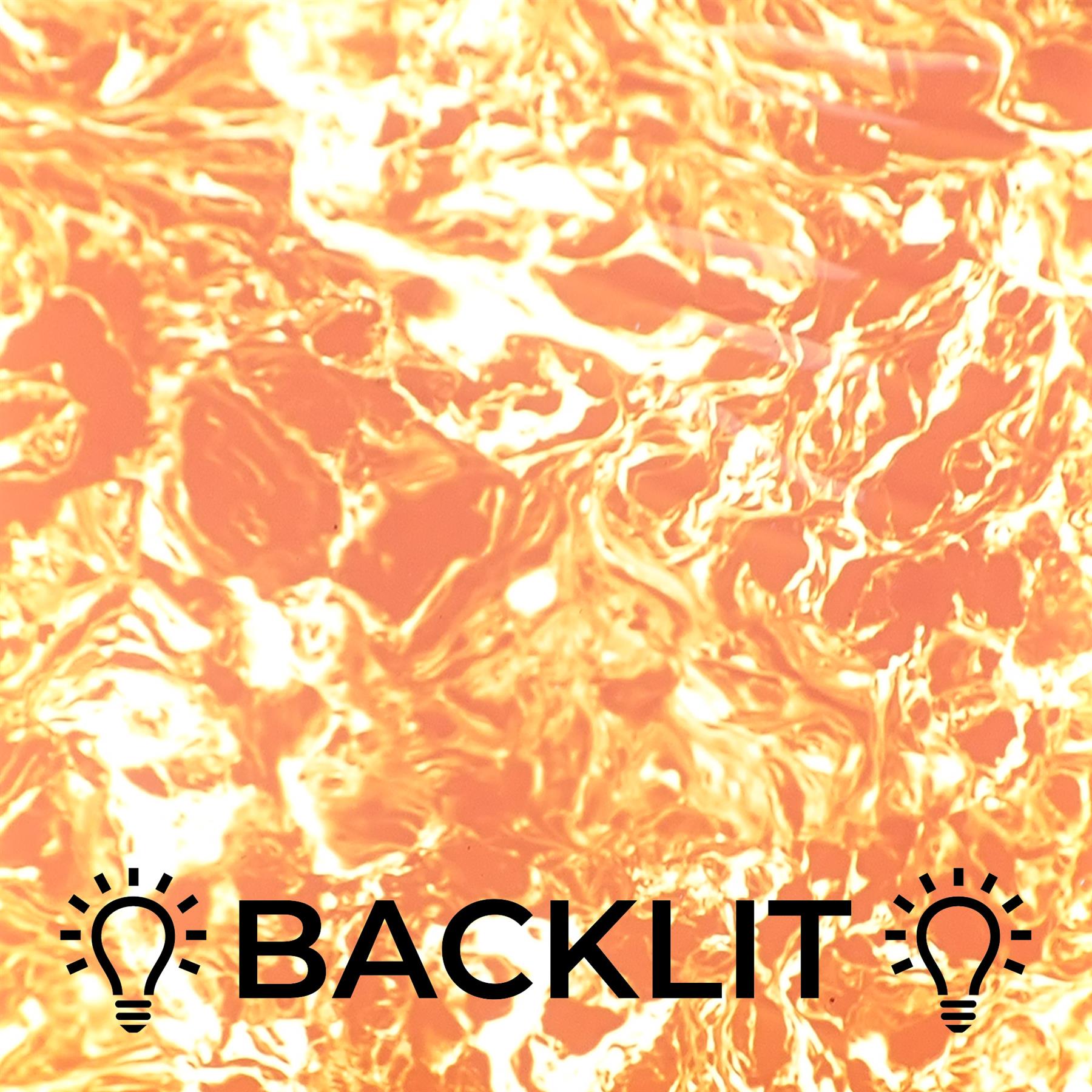 Composite sheet made of a thin film of celluloid laminate sandwiched between two layers of clear cast acrylic, giving the benefits of both materials - the gorgeous and varied patterns possible in celluloid, with the stability and ease of machining of acrylic
