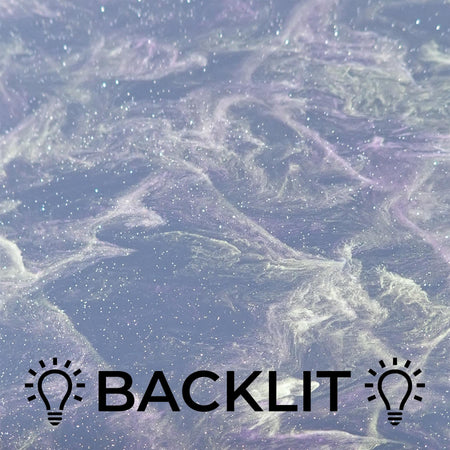Cast acrylic sheet with holographic glitter flakes throughout; this is a premium glitter sheet with the flakes embedded in the sheet so the appearance remains however the sheet is machined. Sheet can be bent, polished, illuminated and laser cut. Available in sizes from 150x125mm up to full sheets of 1000x600mm. 3mm thickness makes it suitable for all manner of jewellery, craft and display projects. Glitter sheets can be laser cut but extra care should be taken as the flake can get very hot, and it produces a rougher finish which may need sanding or polishing afterwards.