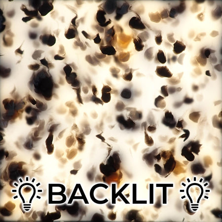 Cast acrylic sheet with holographic glitter flakes throughout; this is a premium glitter sheet with the flakes embedded in the sheet so the appearance remains however the sheet is machined. Sheet can be bent, polished, illuminated and laser cut. Available in sizes from 150x125mm up to full sheets of 1000x600mm. 3mm thickness makes it suitable for all manner of jewellery, craft and display projects. Glitter sheets can be laser cut but extra care should be taken as the flake can get very hot, and it produces a rougher finish which may need sanding or polishing afterwards.