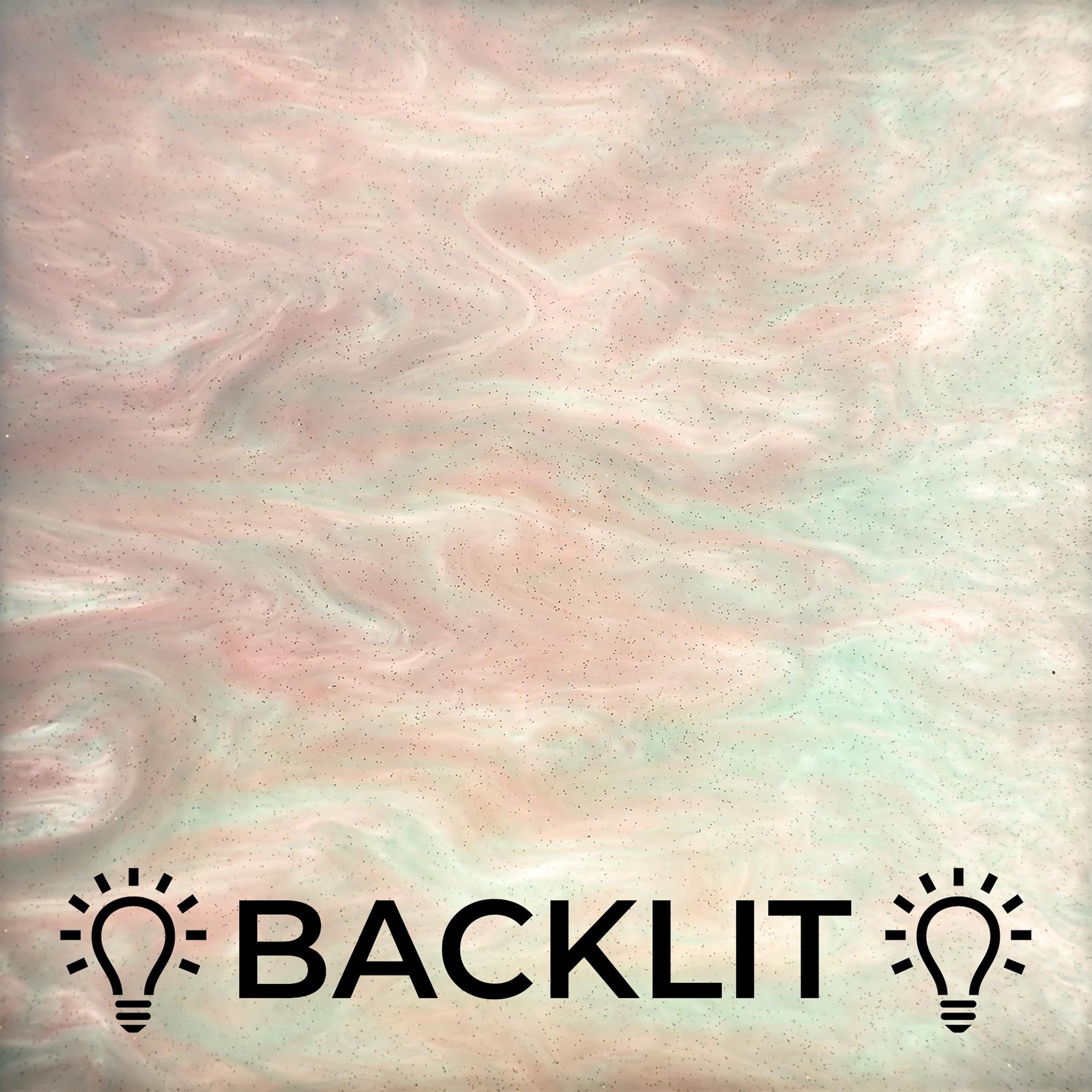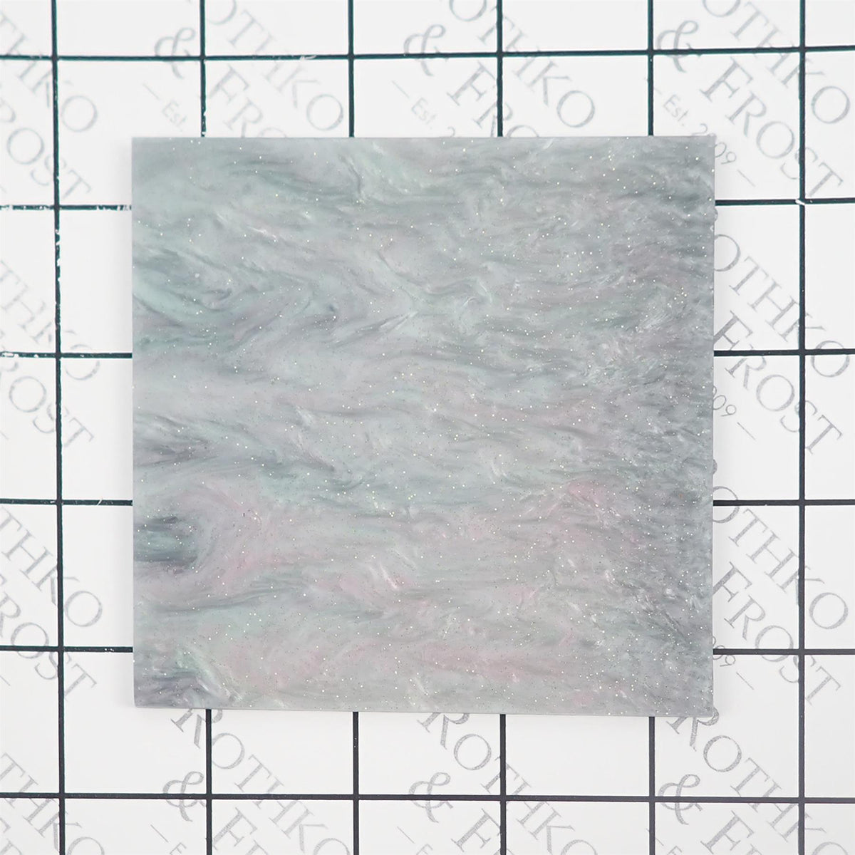 Swirling pearl pattern cast acrylic sheet with subtle glitter throughout the material