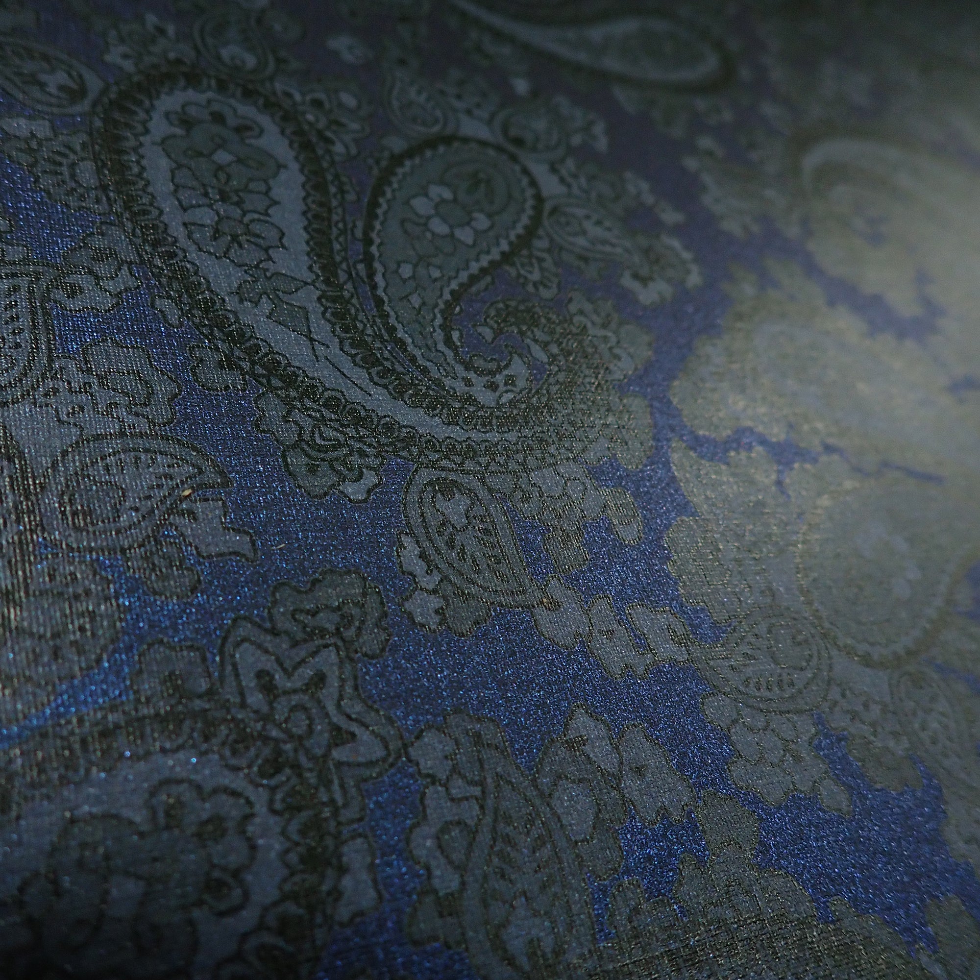 • Colour & Pattern kings blue backed black fabric texture paisley