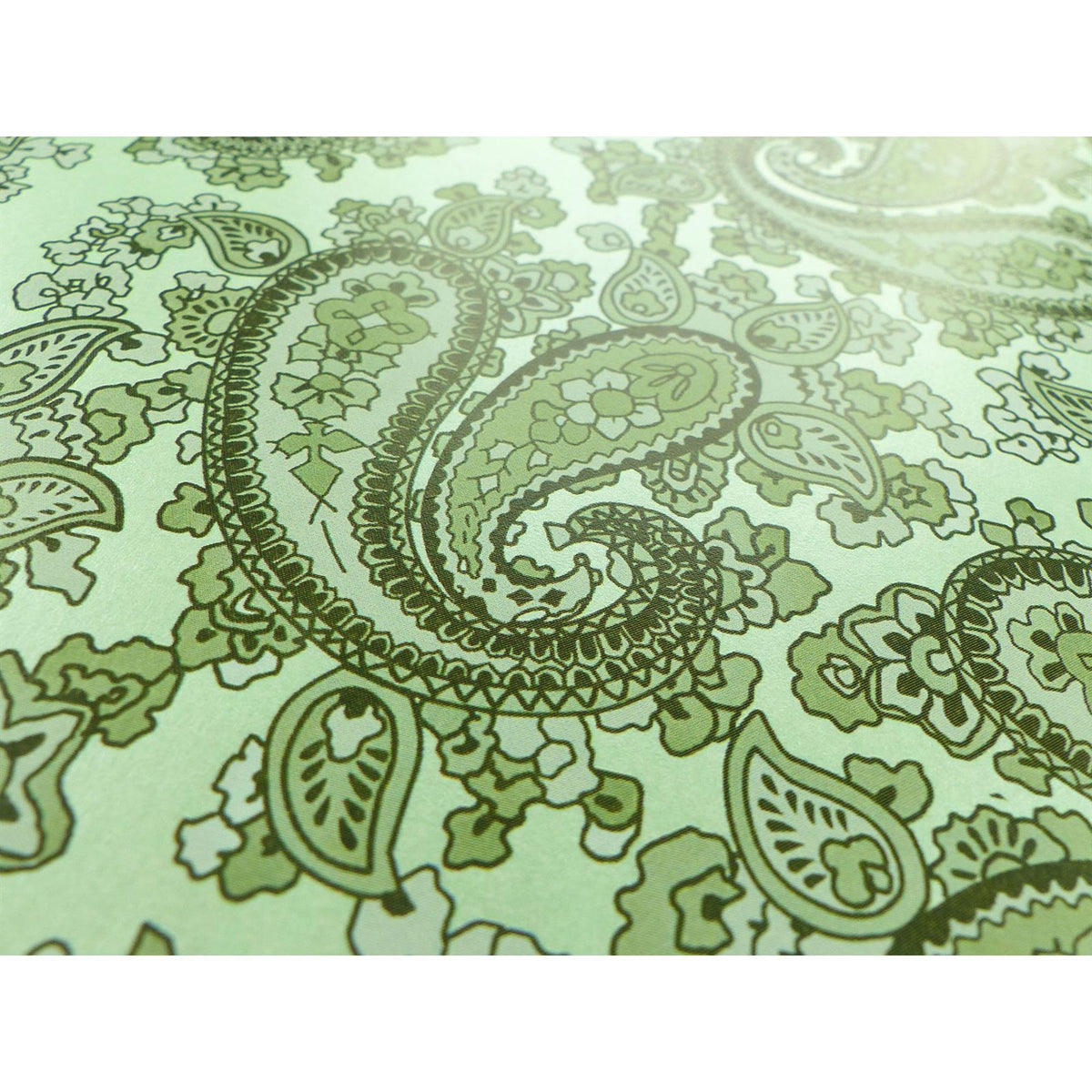 • Colour & Pattern Mint Green Backed Racing Green Paisley