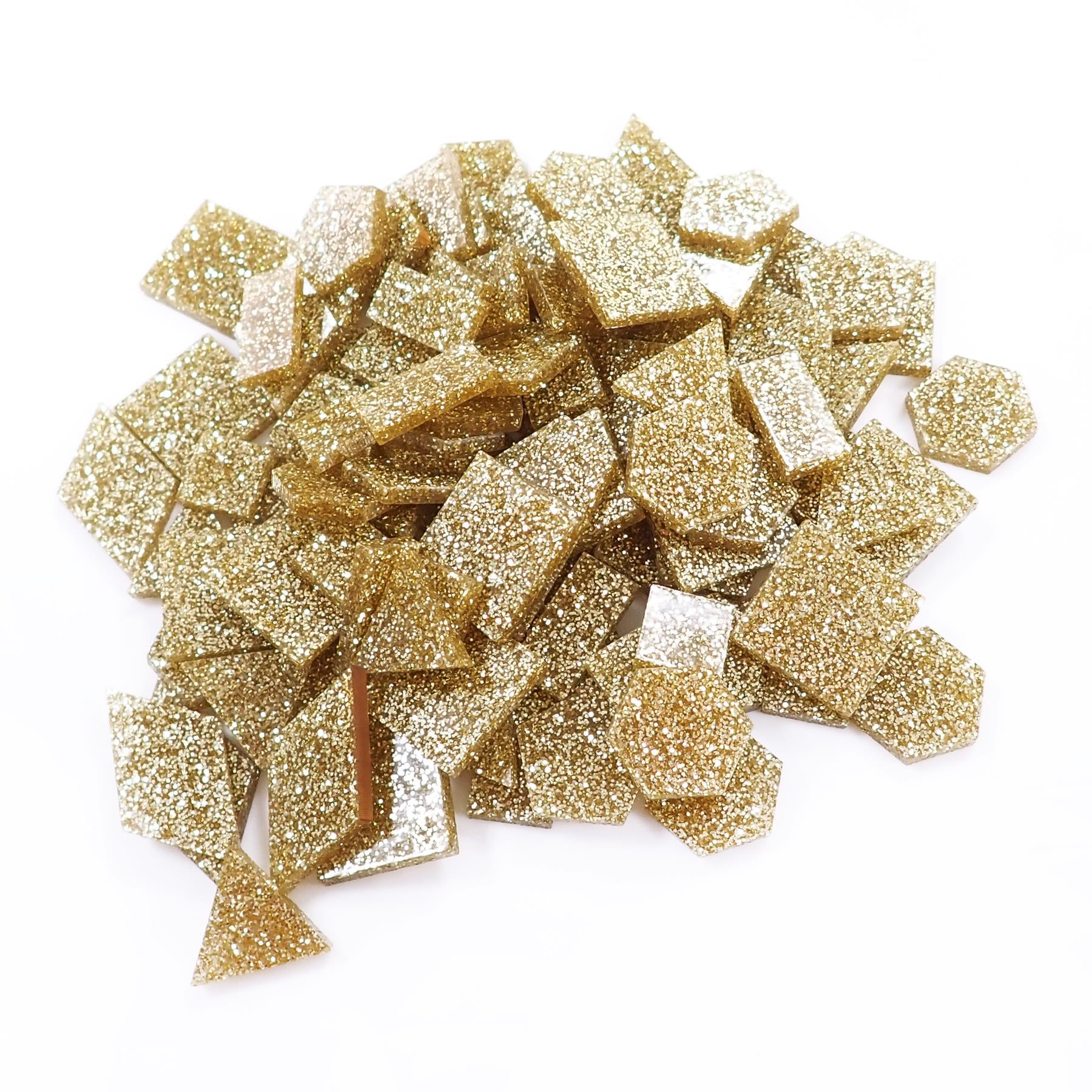 Mixed Light Gold Glitter Acrylic Mosaic Tiles, 12-30mm (Pack of 200pcs)