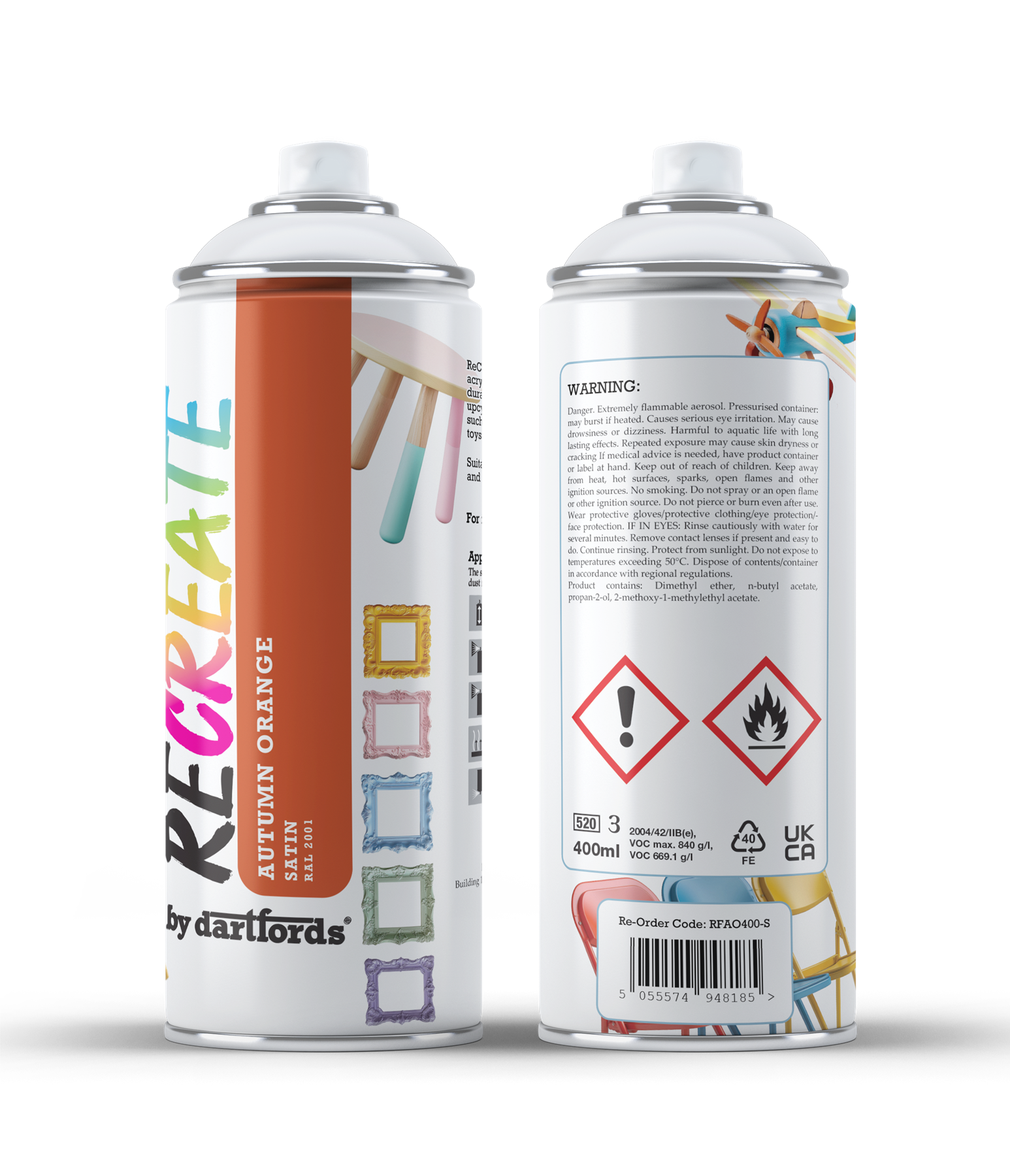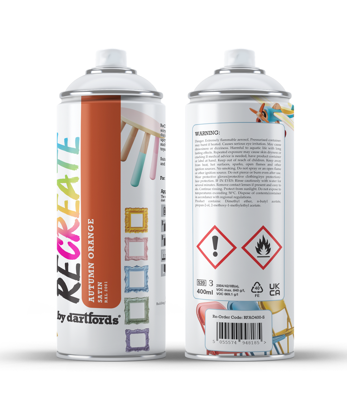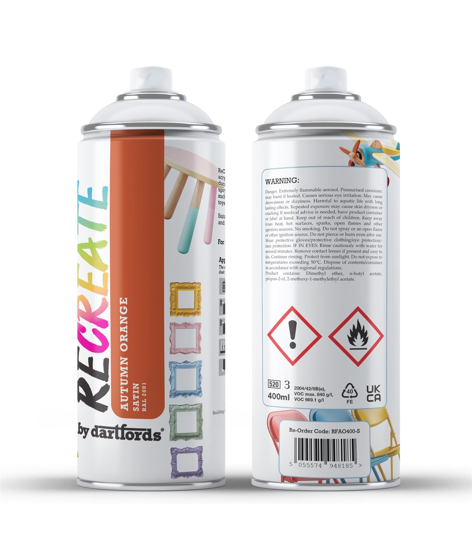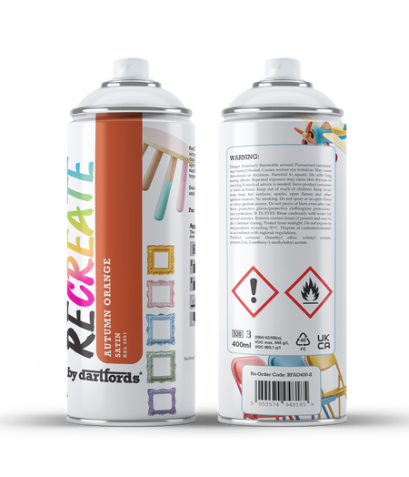 RECREATE Autumn Orange Satin Spray Paint for Wood, Metal, Plastic | Quick Drying, Smooth, Durable, Easy-to-Apply | Suitable for Indoor / Outdoor | For Furniture, Craft, Doors, Ornaments, Pots, Frames