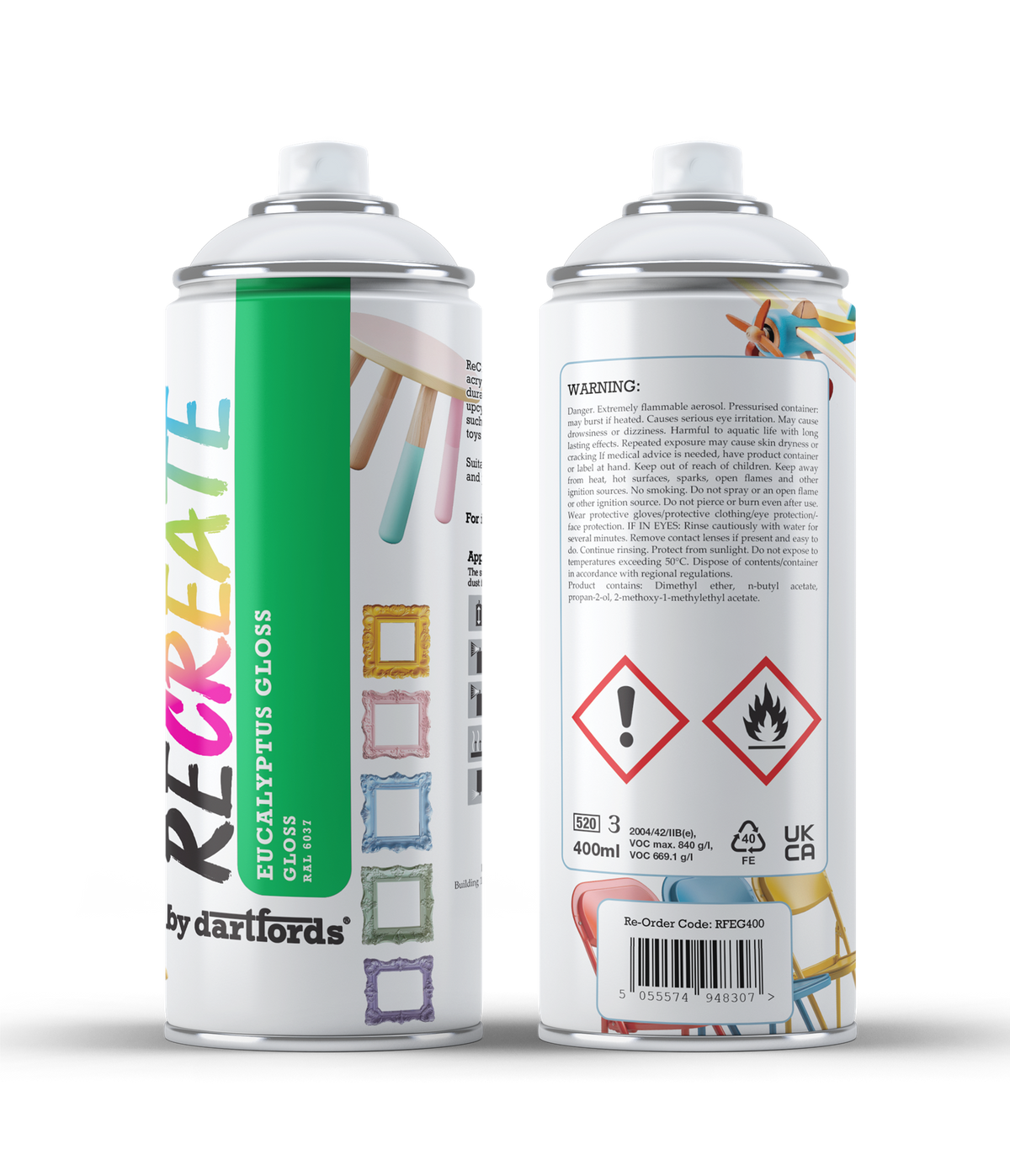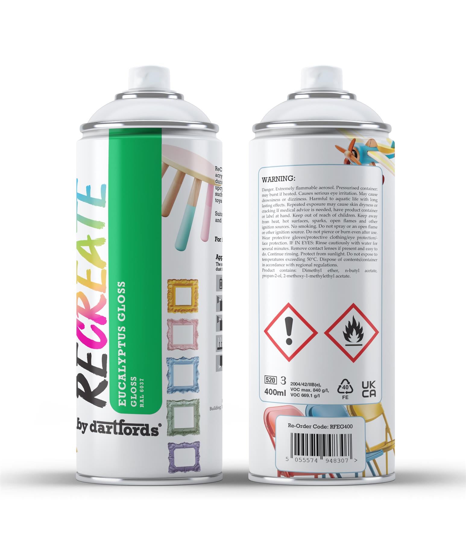 RECREATE Eucalyptus Green Gloss Spray Paint for Wood, Metal, Plastic | Quick Drying, Smooth, Durable, Easy-to-Apply | Suitable for Indoor / Outdoor | Furniture, Craft, Doors, Ornaments, Pots, Frames