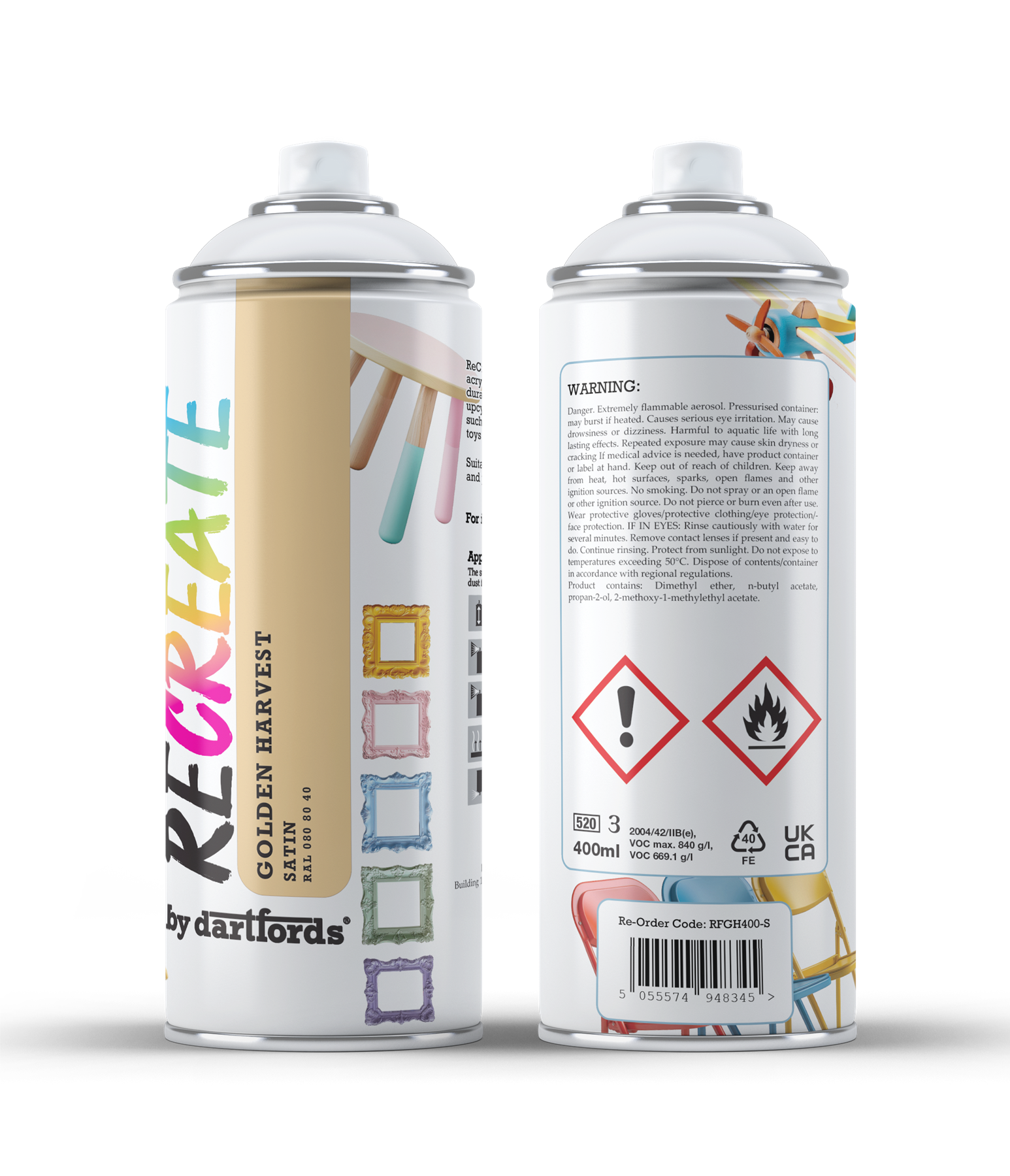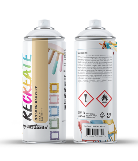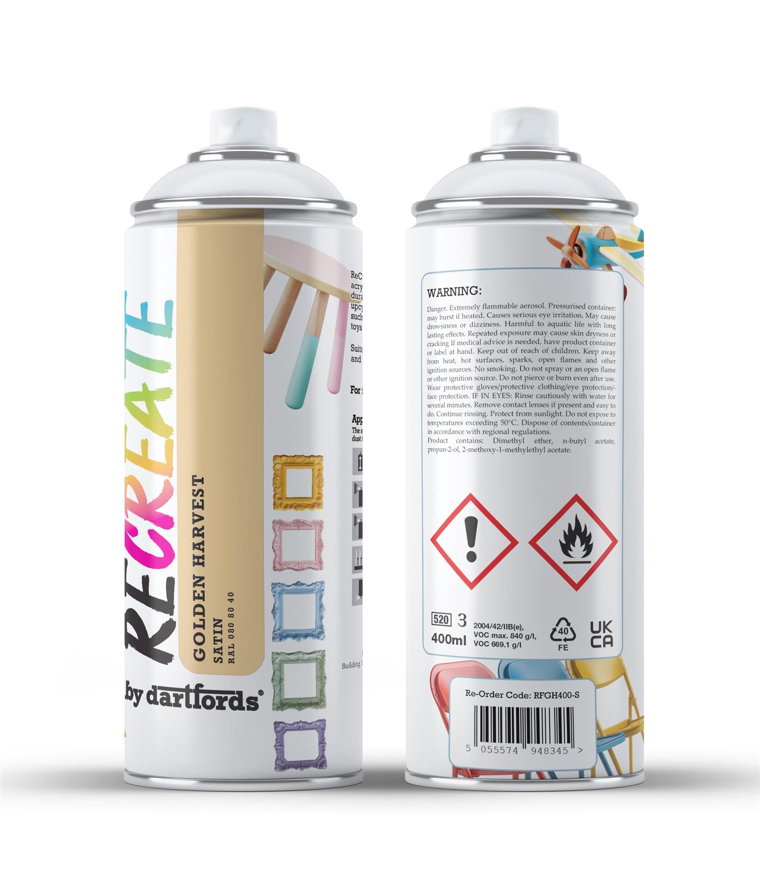 RECREATE Golden Harvest Yellow Gloss Spray Paint for Wood, Metal, Plastic | Quick Drying, Smooth, Durable, Easy-to-Apply | Indoor / Outdoor | For Furniture, Craft, Doors, Ornaments, Pots, Frames