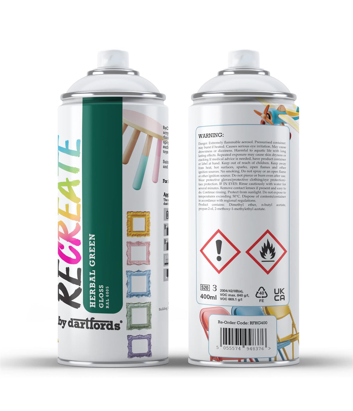 RECREATE Herbal Green Gloss Spray Paint for Wood, Metal, Plastic | Quick Drying, Smooth, Durable, Easy-to-Apply | Suitable for Indoor / Outdoor | For Furniture, Craft, Doors, Ornaments, Pots, Frames