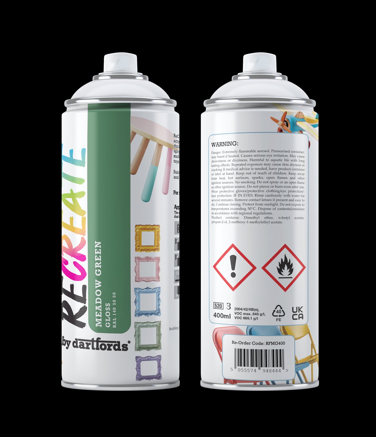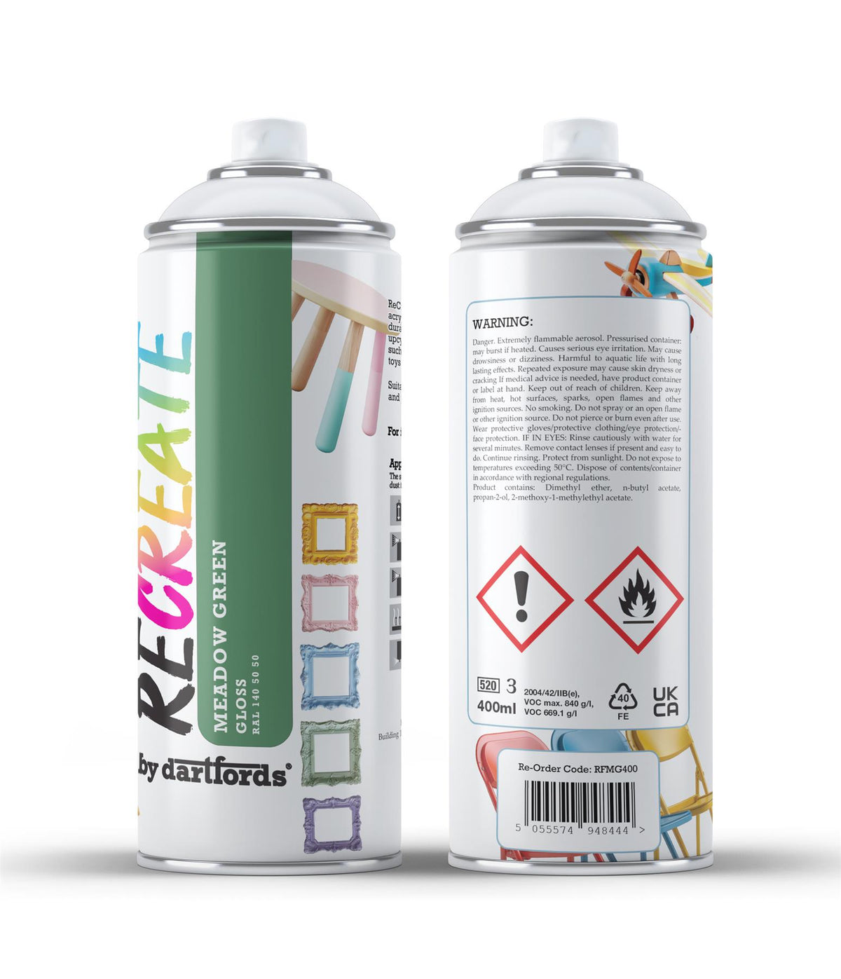 Recreate Meadow Green Gloss Interior/Exterior Spray Paint For Wood, Metal and Plastic - 400ml Aerosol