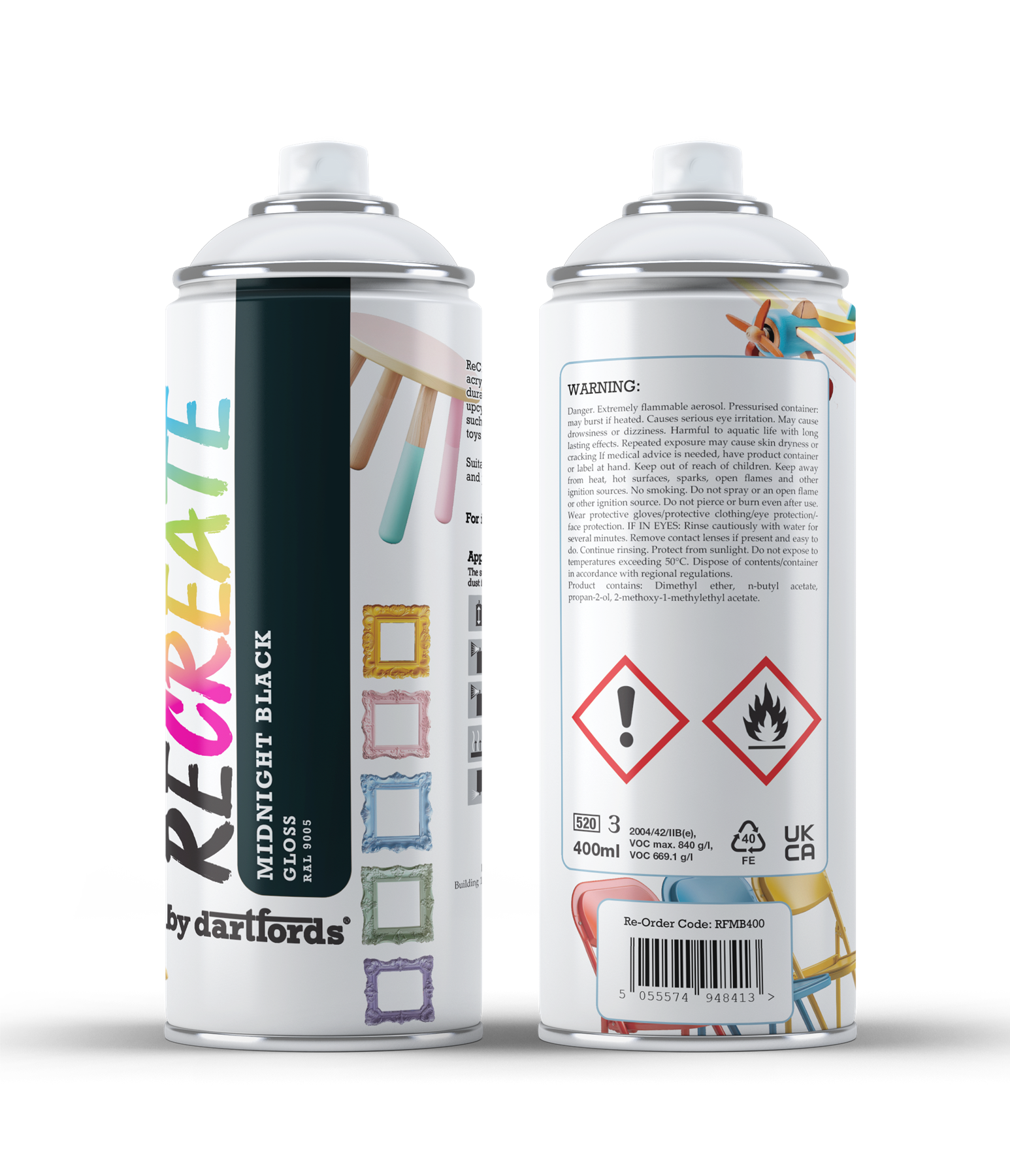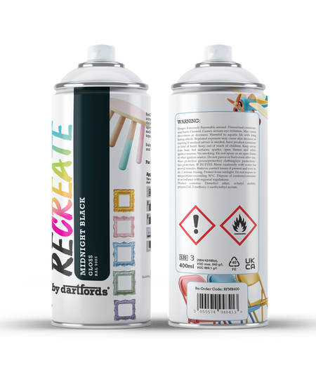 RECREATE Midnight Black Gloss Spray Paint for Wood, Metal, Plastic | Quick Drying, Smooth, Durable, Easy-to-Apply | Suitable for Indoor / Outdoor | For Furniture, Craft, Doors, Ornaments, Pots, Frames