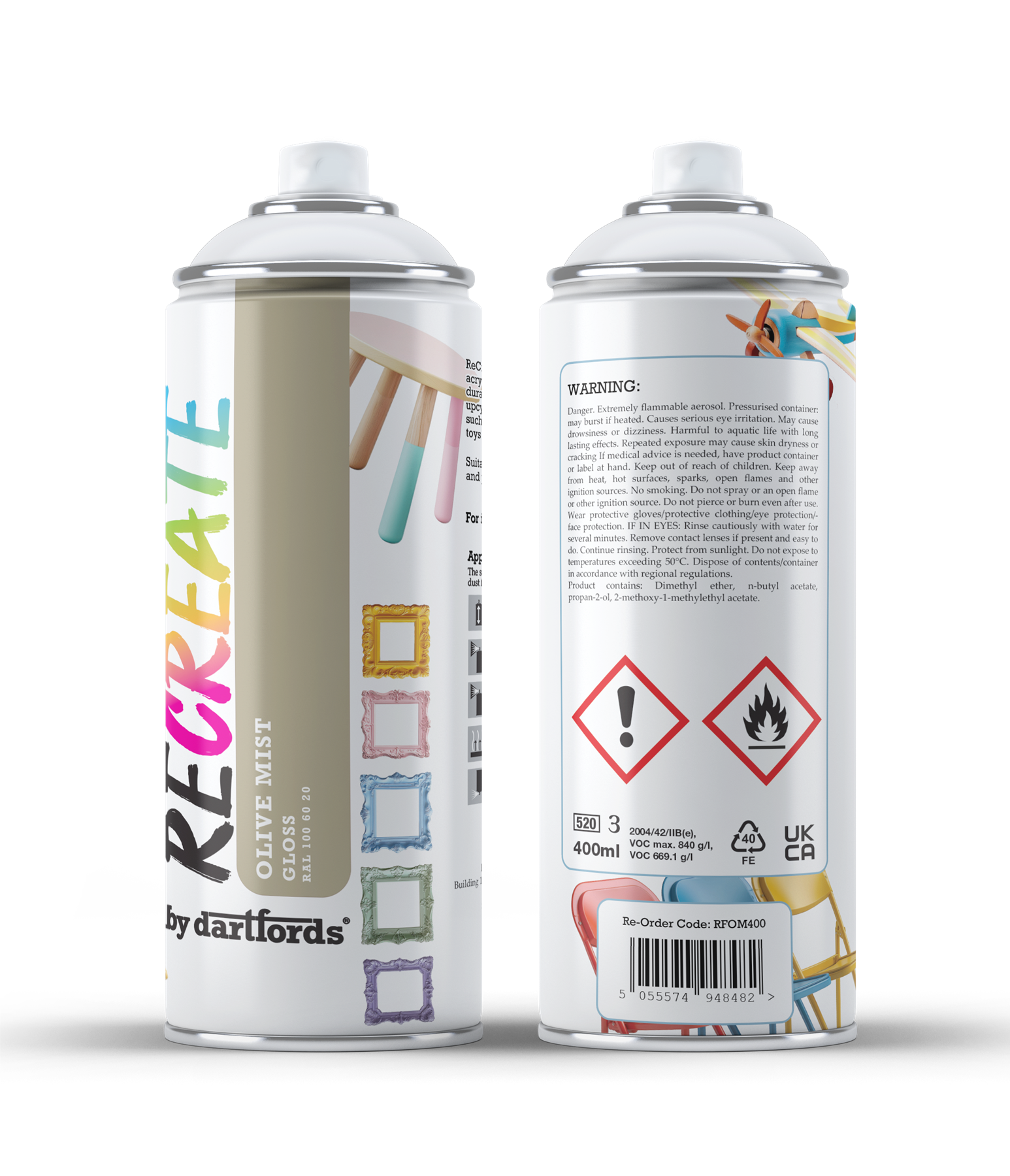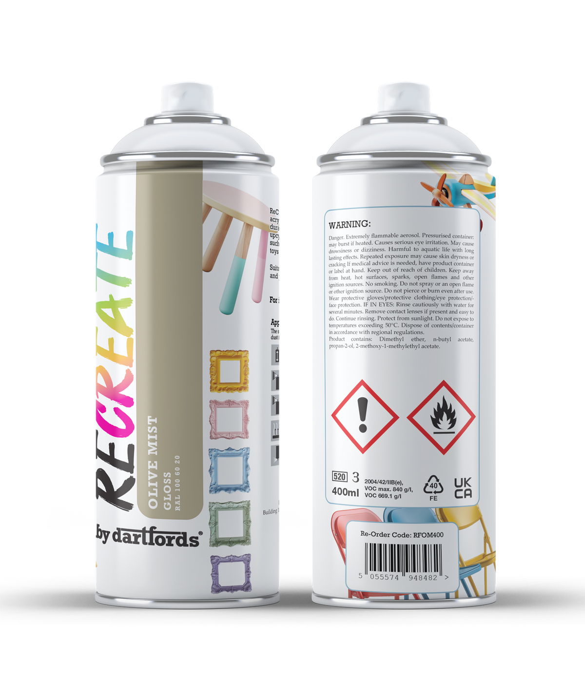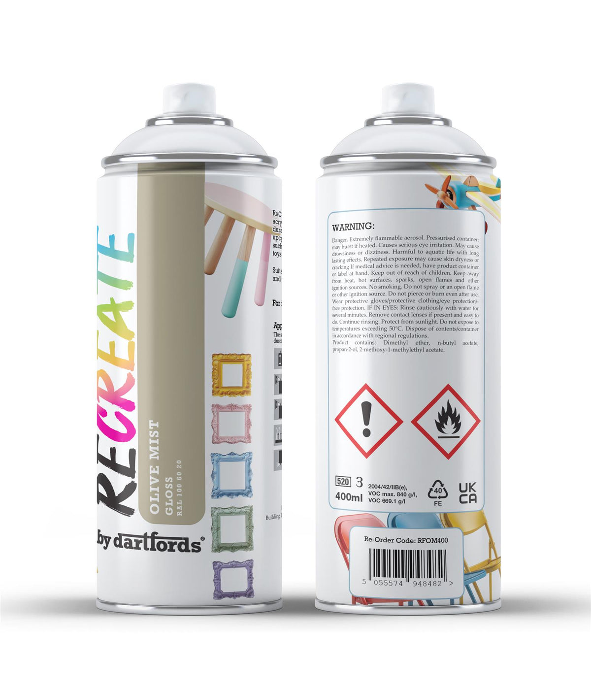 RECREATE Olive Mist Green Gloss Spray Paint for Wood, Metal, Plastic | Quick Drying, Smooth, Durable, Easy-to-Apply | Suitable for Indoor / Outdoor | Furniture, Craft, Doors, Ornaments, Pots, Frames