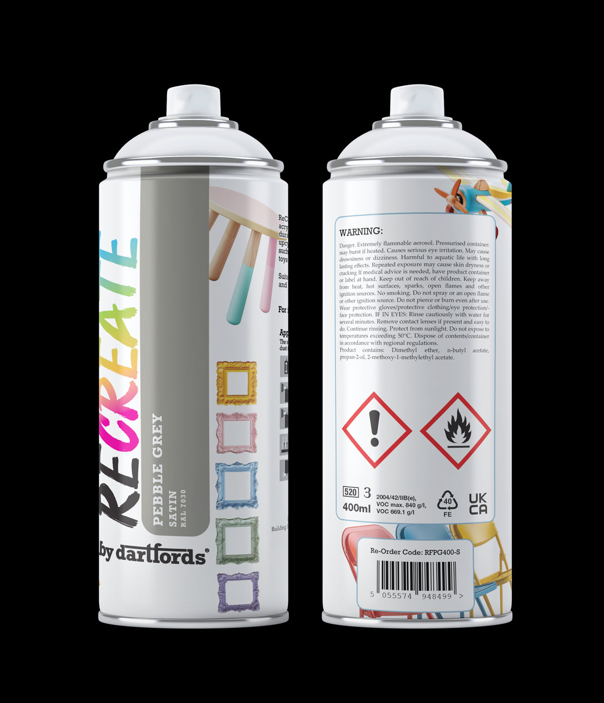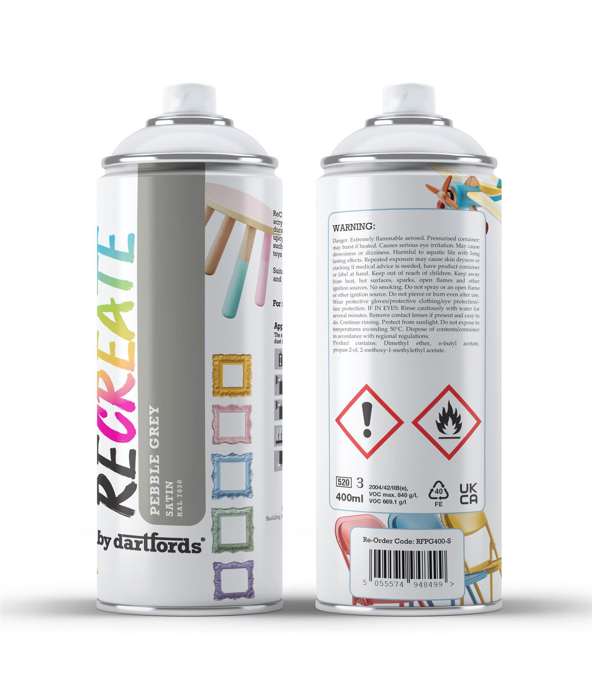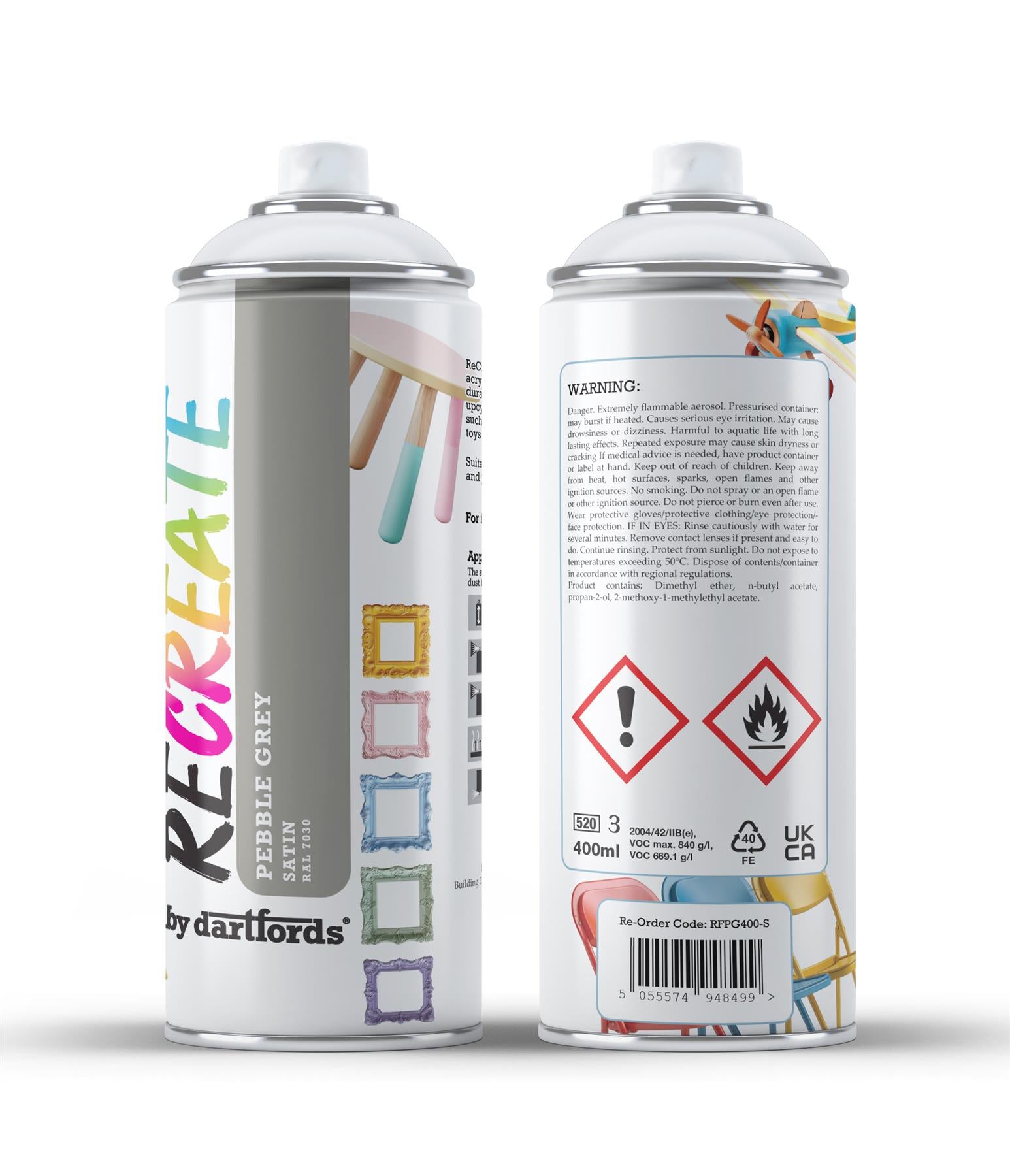Recreate Pebble Grey Satin Interior/Exterior Spray Paint For Wood, Metal and Plastic - 400ml Aerosol