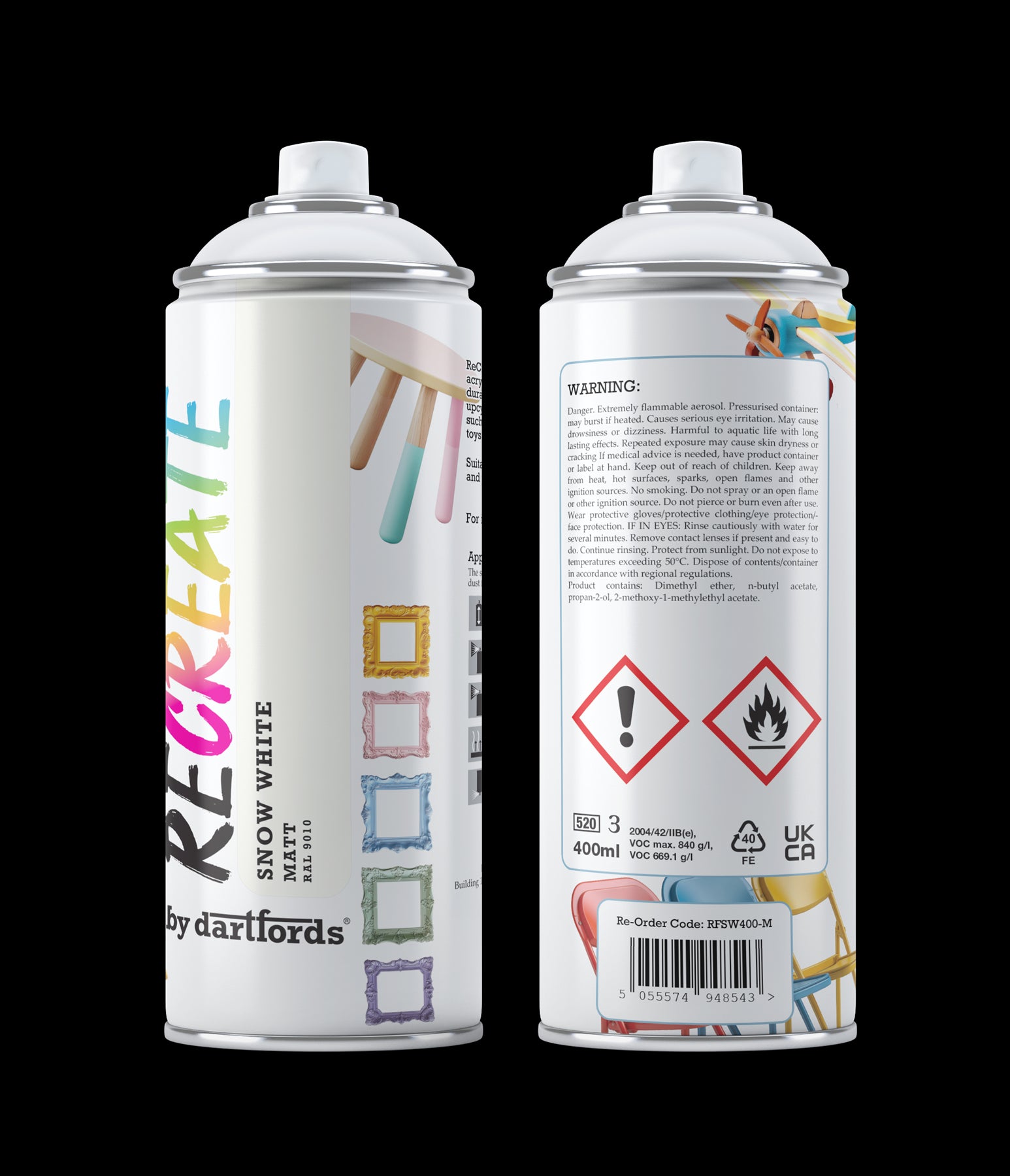 Recreate Snow White Matt Interior/Exterior Spray Paint For Wood, Metal and Plastic - 400ml Aerosol