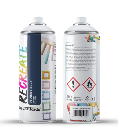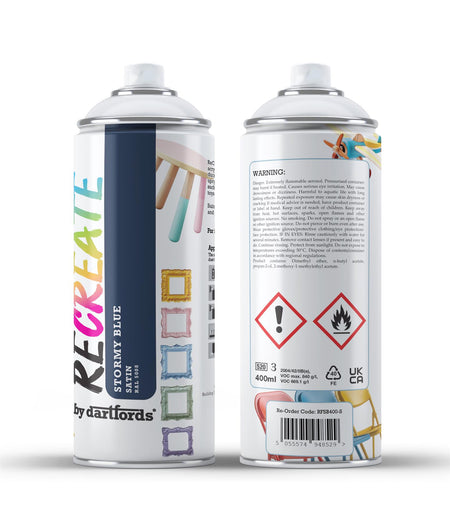 RECREATE Stormy Blue Satin Spray Paint for Wood, Metal, Plastic | Quick Drying, Smooth, Durable, Easy-to-Apply | Suitable for Indoor / Outdoor | For Furniture, Craft, Doors, Ornaments, Pots, Frames