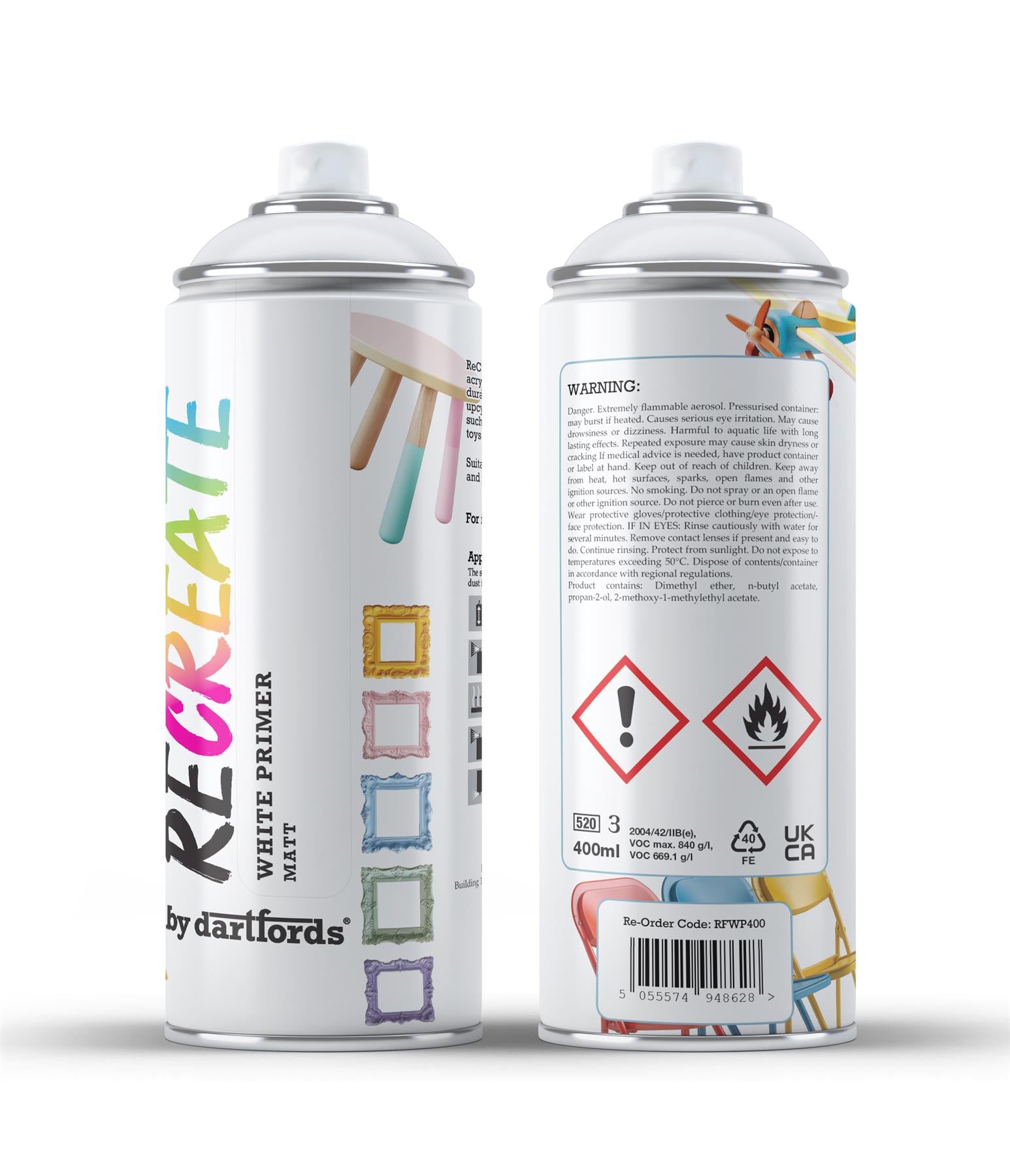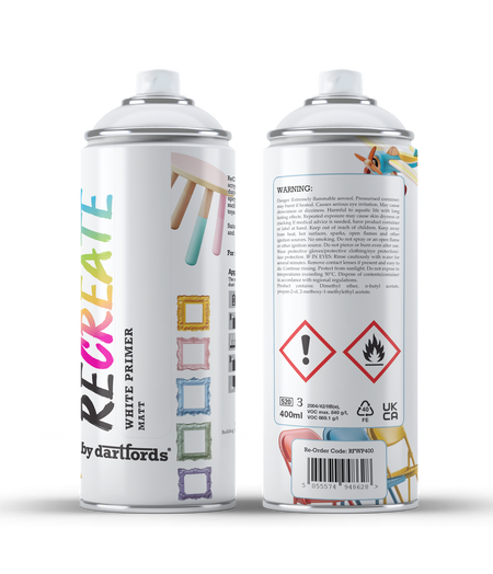 THE ESSENTIAL FIRST STEP: Unlock a flawless, professional finish! This primer is crucial for preparing wood, metal, and plastic surfaces, ensuring your topcoat looks exceptional and lasts longer.. ✨ ENHANCED ADHESION & DURABILITY: Make your beautiful paintwork stick and endure! Our primer promotes superior adhesion for your RECREATE paints, preventing peeling and chipping for a more durable, long-lasting result.. SMOOTH, FLAWLESS BASE: Say goodbye to uneven finishes! This quick-drying spray primer creates a smooth, uniform surface, helping your coloured topcoats apply more evenly and achieve a richer look.. VERSATILE MULTI-SURFACE SAVIOUR: Perfect for almost any project! Use with confidence indoors or outdoors on furniture, crafts, doors, ornaments, pots, and frames, knowing you're creating the ideal canvas.. ⏱️ QUICK & EASY PREPARATION: Get your projects primed and ready in a flash! The easy-to-use spray application and quick-drying formula mean less prep time and more time for the fun part – painting!.