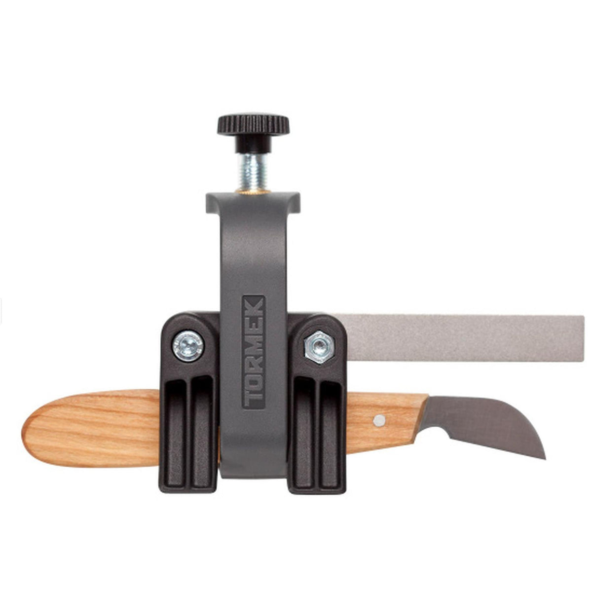The Small Knife Holder SVM-00 from Tormek opens up the possibility to sharpen those really small knife blades, which up until now have been difficult to sharpen. Normally small knives have been sharpened free-hand but every time it was a challenge to get a consistent shape and almost impossible to control the edge angle. The holder works together with the Tormek Knife Jig SVM-45. You can sharpen knives of different shapes for whittling, chip carving and detail work, even folding pocket knives can be sharpened with perfect control. Since it is the handle of the knife that is mounted in the SVM‑00 holder, there is really no limit to how small a blade you can sharpen.