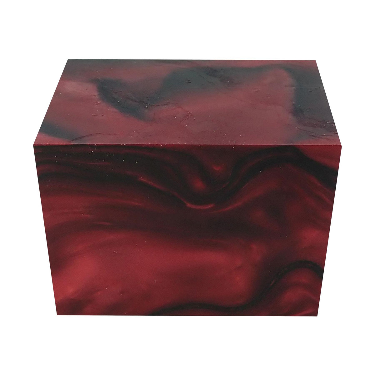 Kirinite acrylic block measuring 64 x 42 x 42mm (2.5" x 1-21/32" x 1-21/32"). Beautiful abstract pattern runs all through the block so remains visible however the material is cut or shaped. Ideal for turning handles, shaving brushes, or small craft items. Polishes to a high shine which enhances the appearance of the pattern.