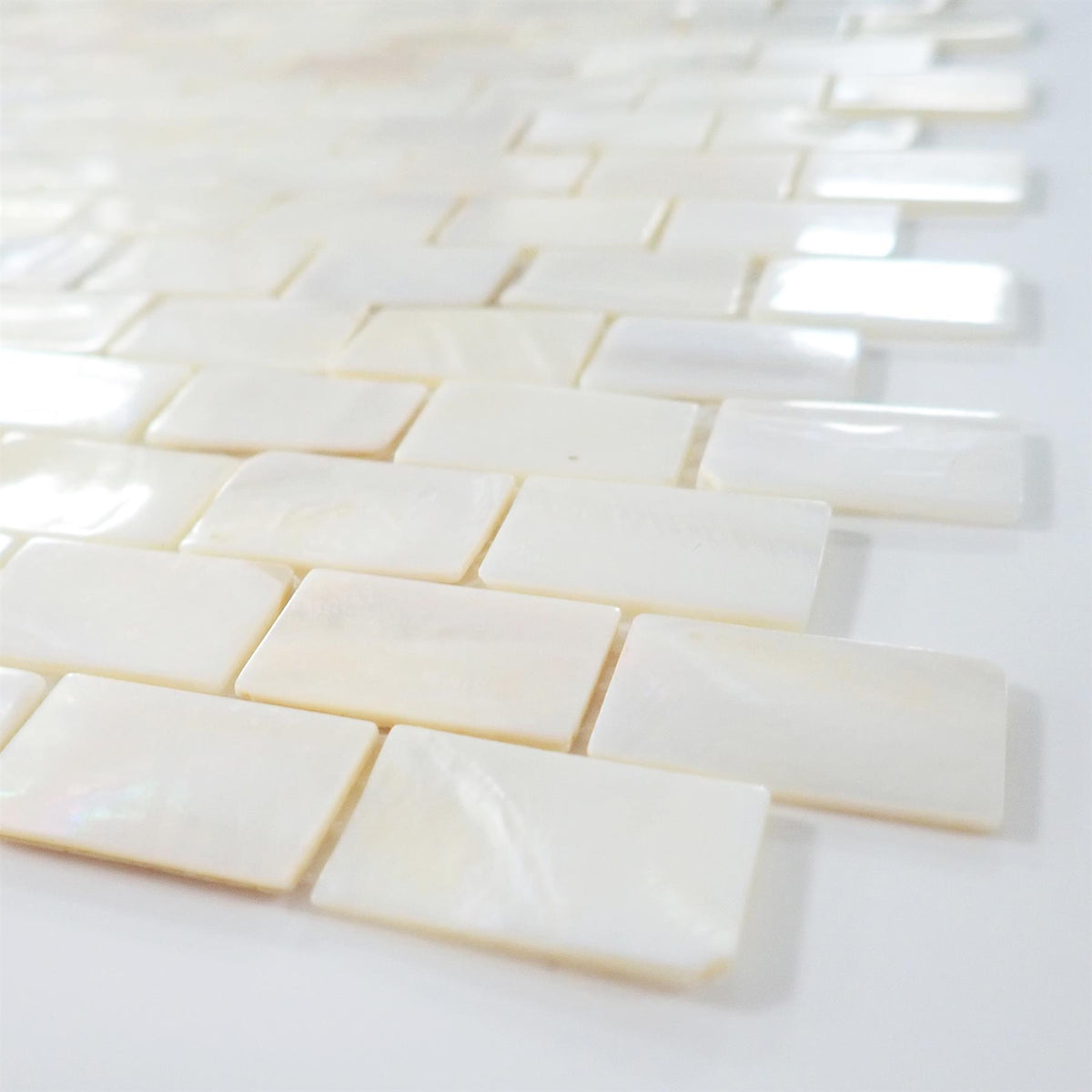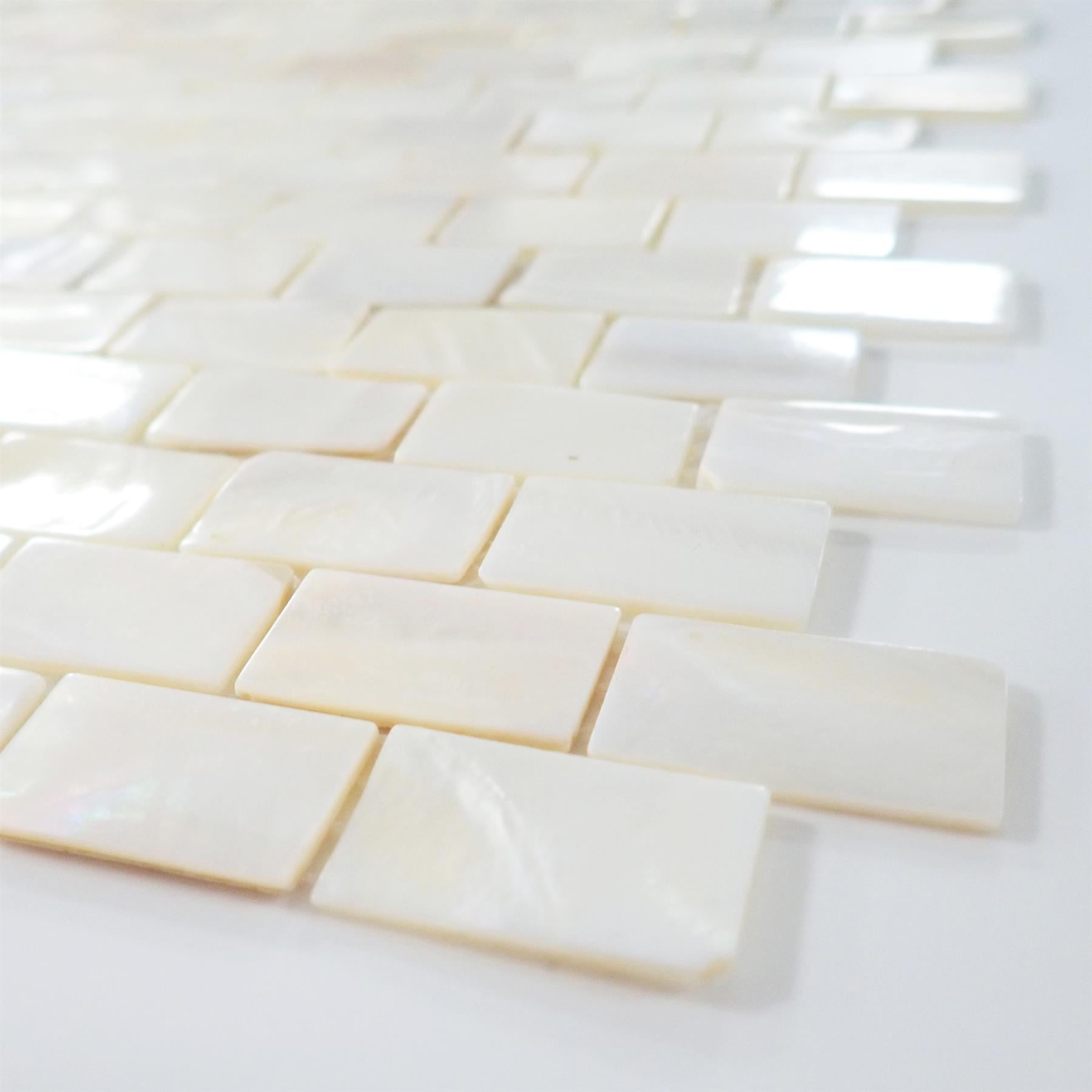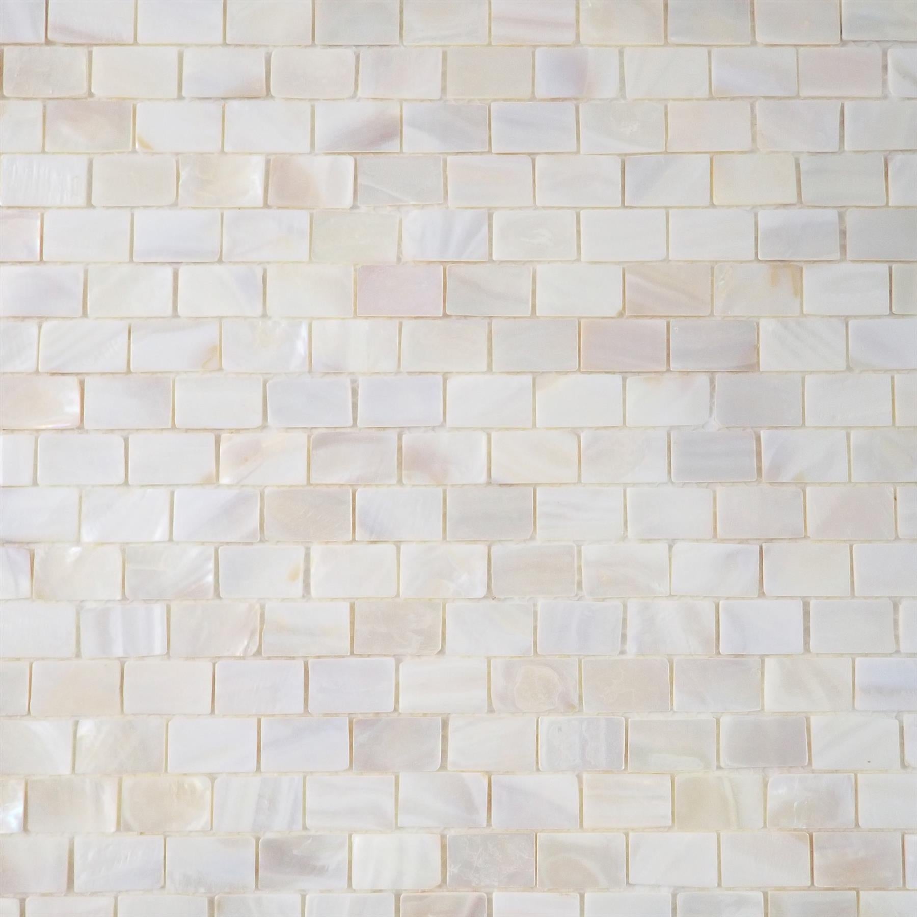 White Mother of Pearl Brick Mosaic Tile - 285x300mm, Mesh Backing