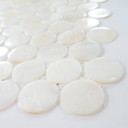 White Mother of Pearl Round Mosaic Tile - 285x298mm, Mesh Backing